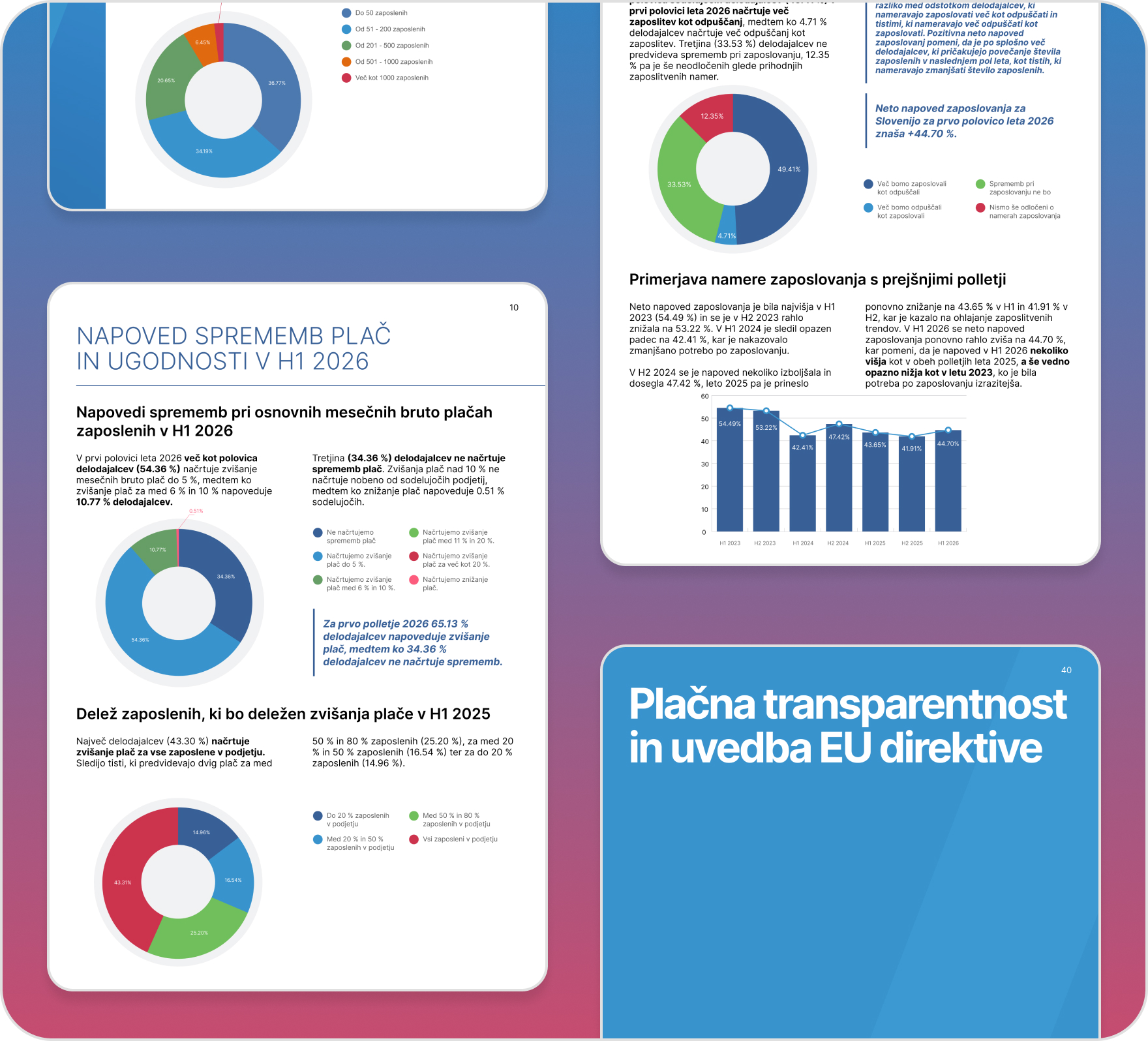 Pridobite vpogled v namere delodajalcev glede zvišanj plač in dodatnih ugodnosti, v pričakovane spremembe v zaposlovanju ter pripravljenost podjetij na uvedbo Direktive EU o transparentnosti plačil.